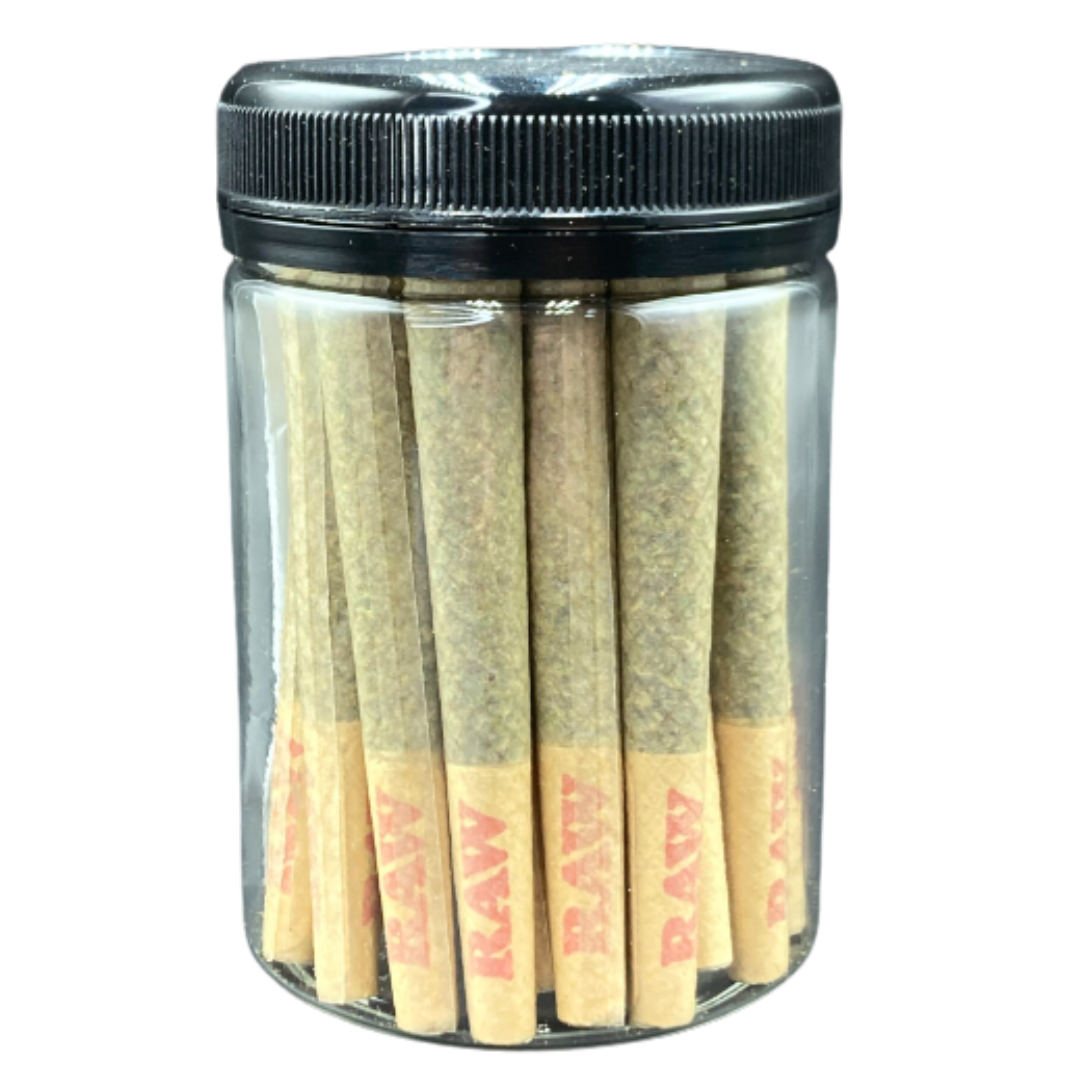 Hand crafted Joints made with top shelf flower in a handy travel jar.